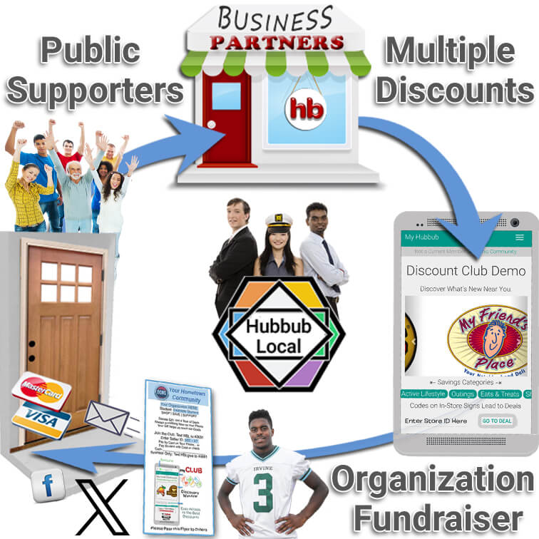 • Hubbub Local helps Student organizations break their reliance on Cash sponsorships. Our platform's more effective method involves having the students sell high value and high return "Discount Club Memberships" that rewards the public for their support. The donors get a full year of savings, business partners can attract more customers and organizations "Earn more than ever before..." to offset the cost of their activities