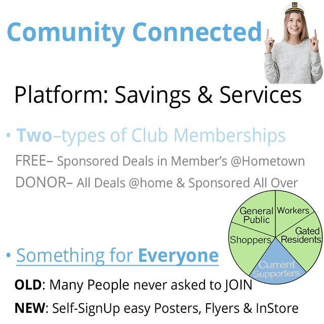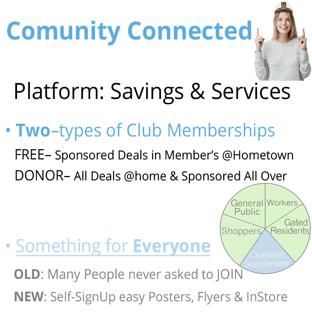 Fundraise Anywhere: Our Open Sales Model means that Students, and their family members, can drastically increase the opportunity to sell Discount Club memberships @Home Community(red/black circle), @Work, @Grandma's(green square), @bestfriends's (blue square) and even widely distributed areas @Church.